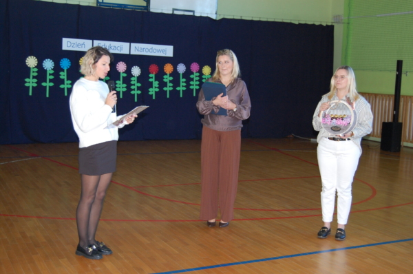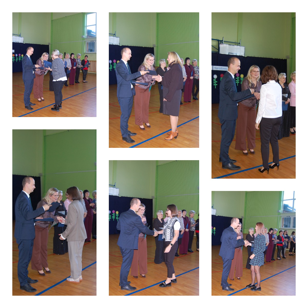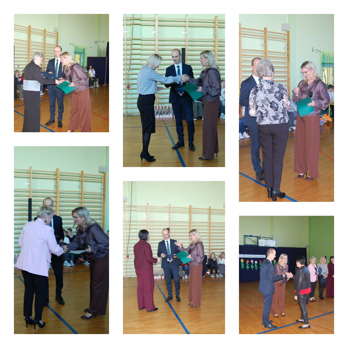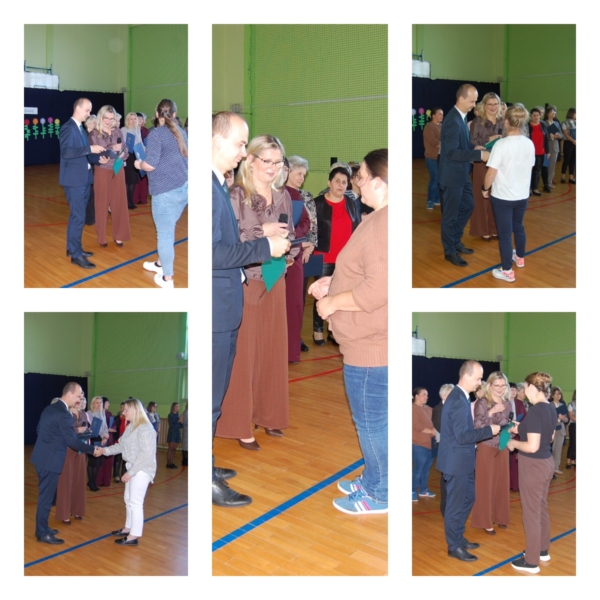 Podczas uroczystości Pani Dyrektor Monika Głuchowska złożyła ciepłe życzenia i wręczyła nagrody nauczycielom i pracownikom szkoły za zaangażowanie, osiągnięcia dydaktyczne i wychowawcze oraz wkład w rozwój szkoły. Do życzeń dołączyli rodzice – w ich imieniu głos zabrała przewodnicząca Rady Rodziców Przedszkola – pani Katarzyna Sadłowska oraz pani Beata Dasiewicz – przewodnicząca Rady Rodziców Szkoły.
