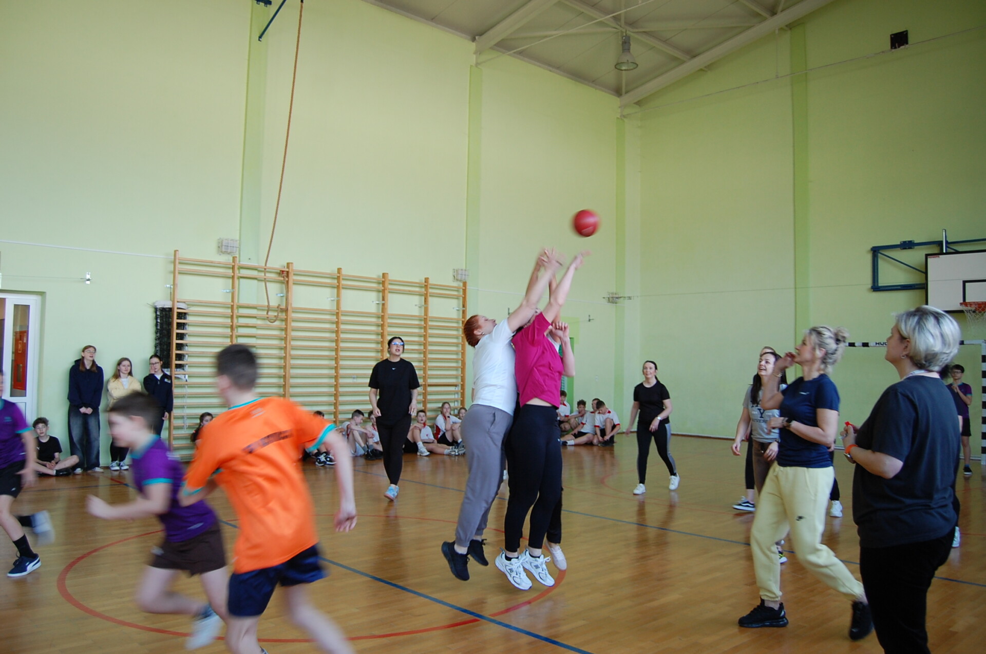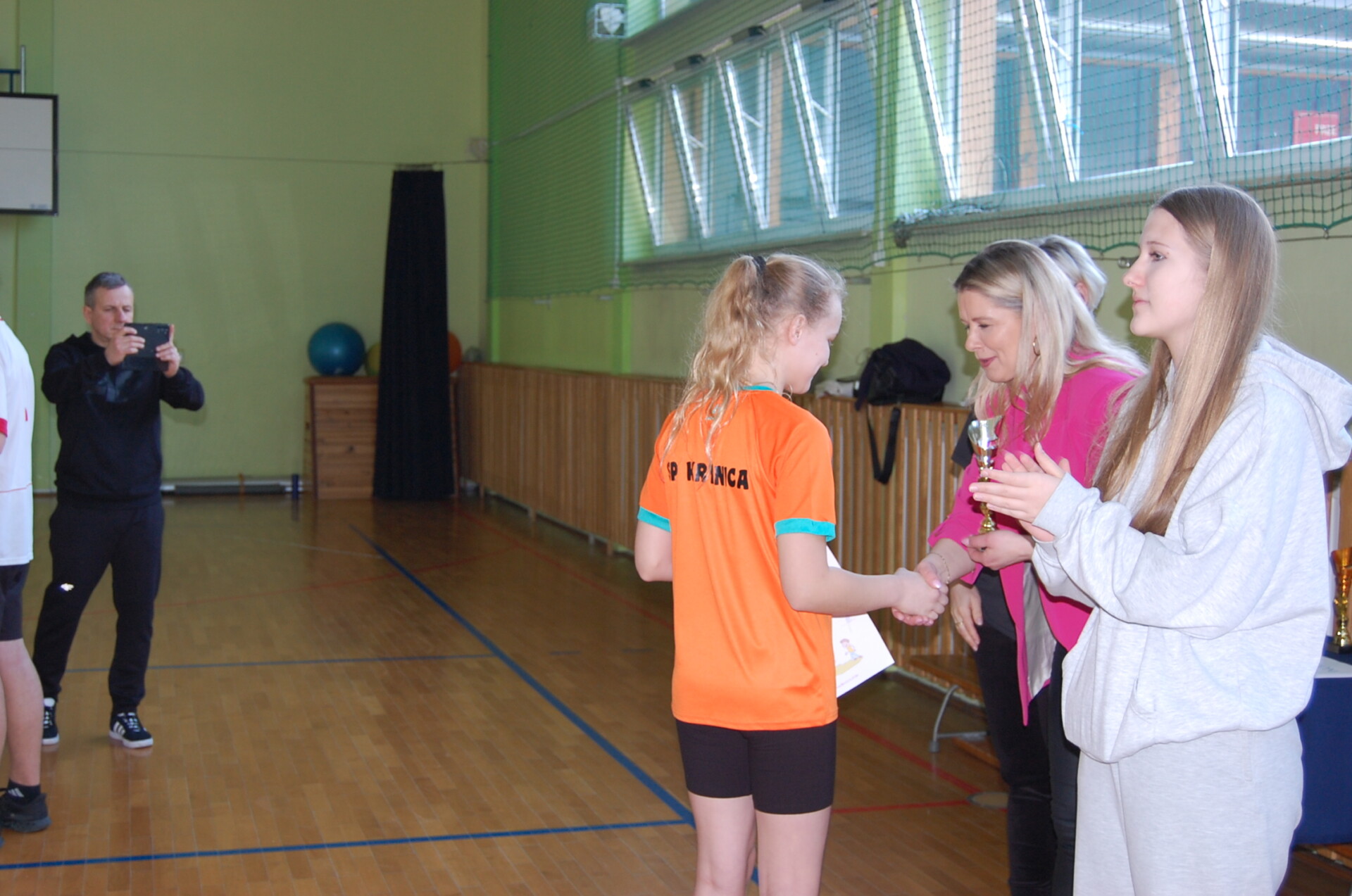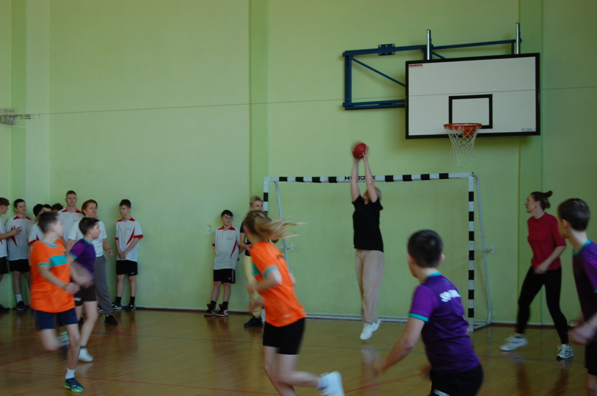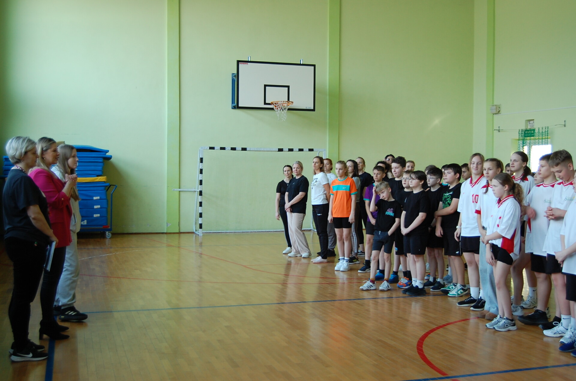 Na zakończenie turnieju rozegrano wyjątkowy, pełen emocji mecz: Drużyna Dorosłych zmierzyła się ze zwycięzcami obu kategorii – zespołem z Krynicy (kl. 4–6) oraz drużyną z Suchożebr (kl. 7–8). Spotkanie dostarczyło wielu wrażeń i było świetnym zwieńczeniem sportowego dnia.
