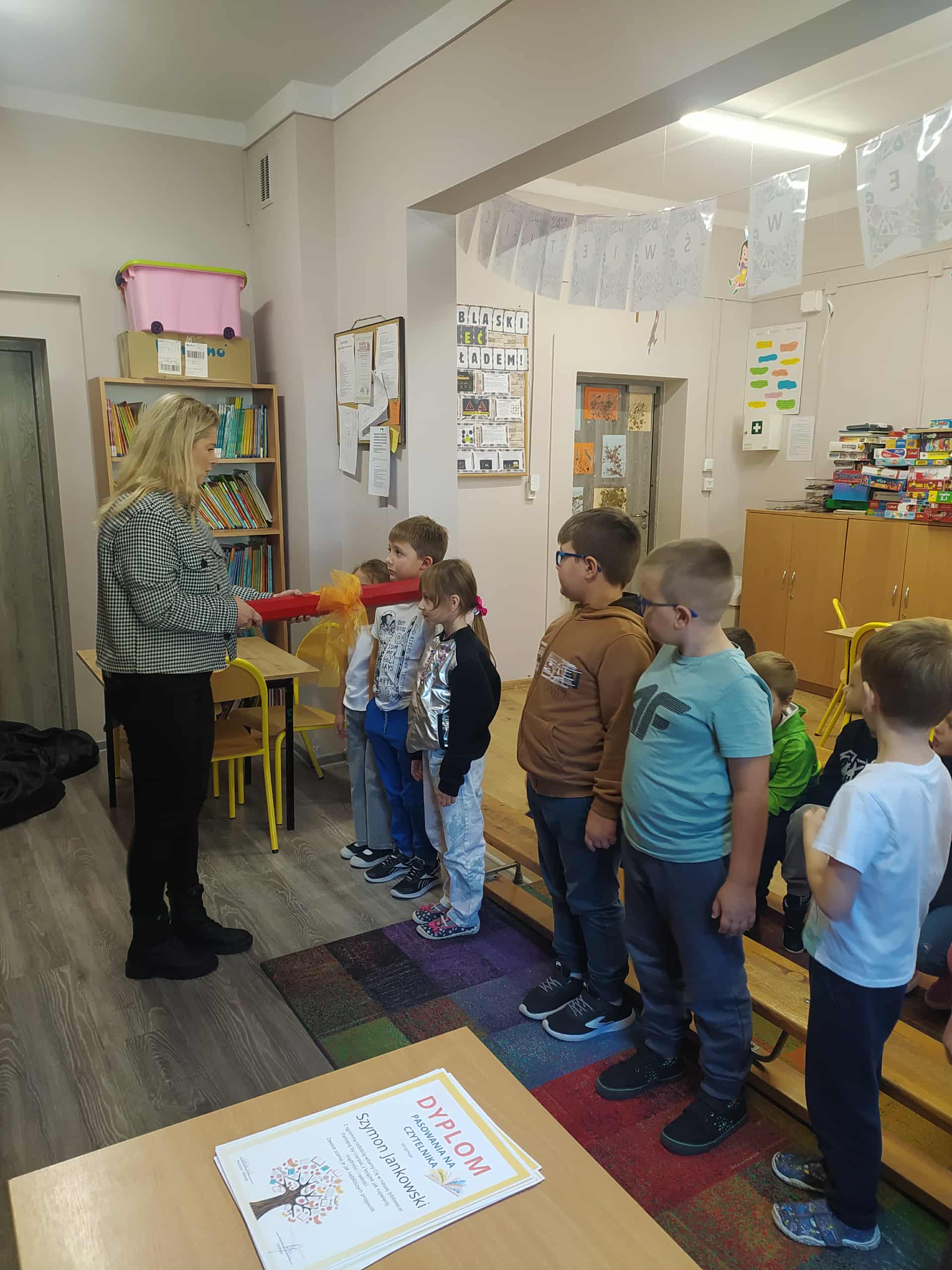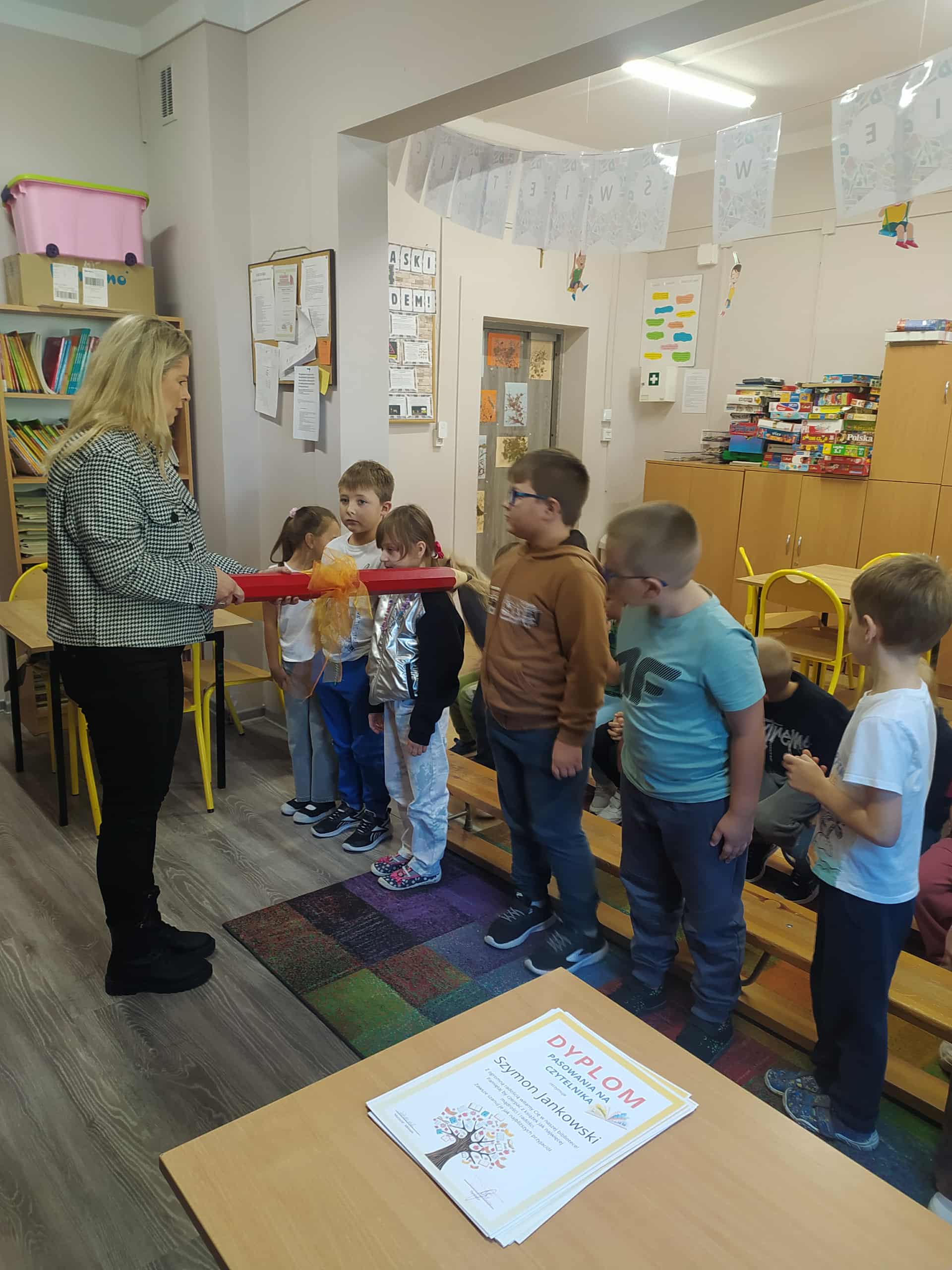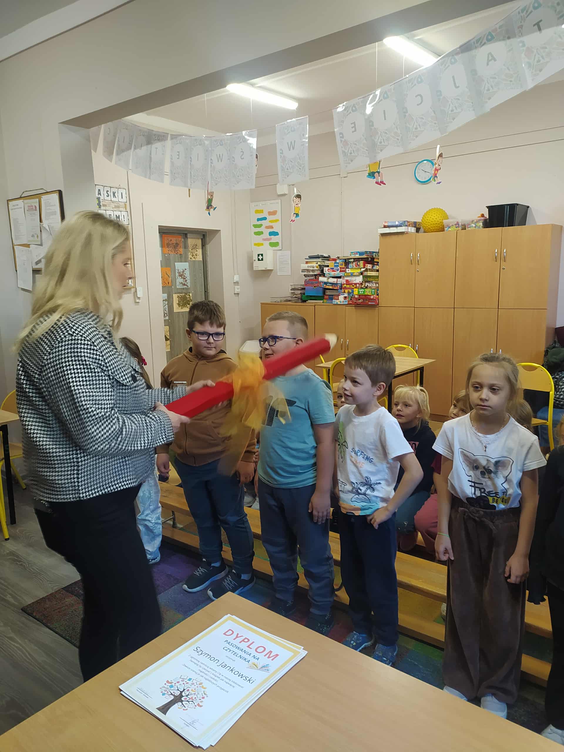 W dniu dzisiejszym uczniowie klasy I zostali uroczyście przyjęci do grona czytelników naszej biblioteki. Pani Dyrektor Monika Głuchowska dokonała pasowania Pierwszaków. Dzieci poznały zasady wypożyczenia książek oraz zasady szanowania książki.