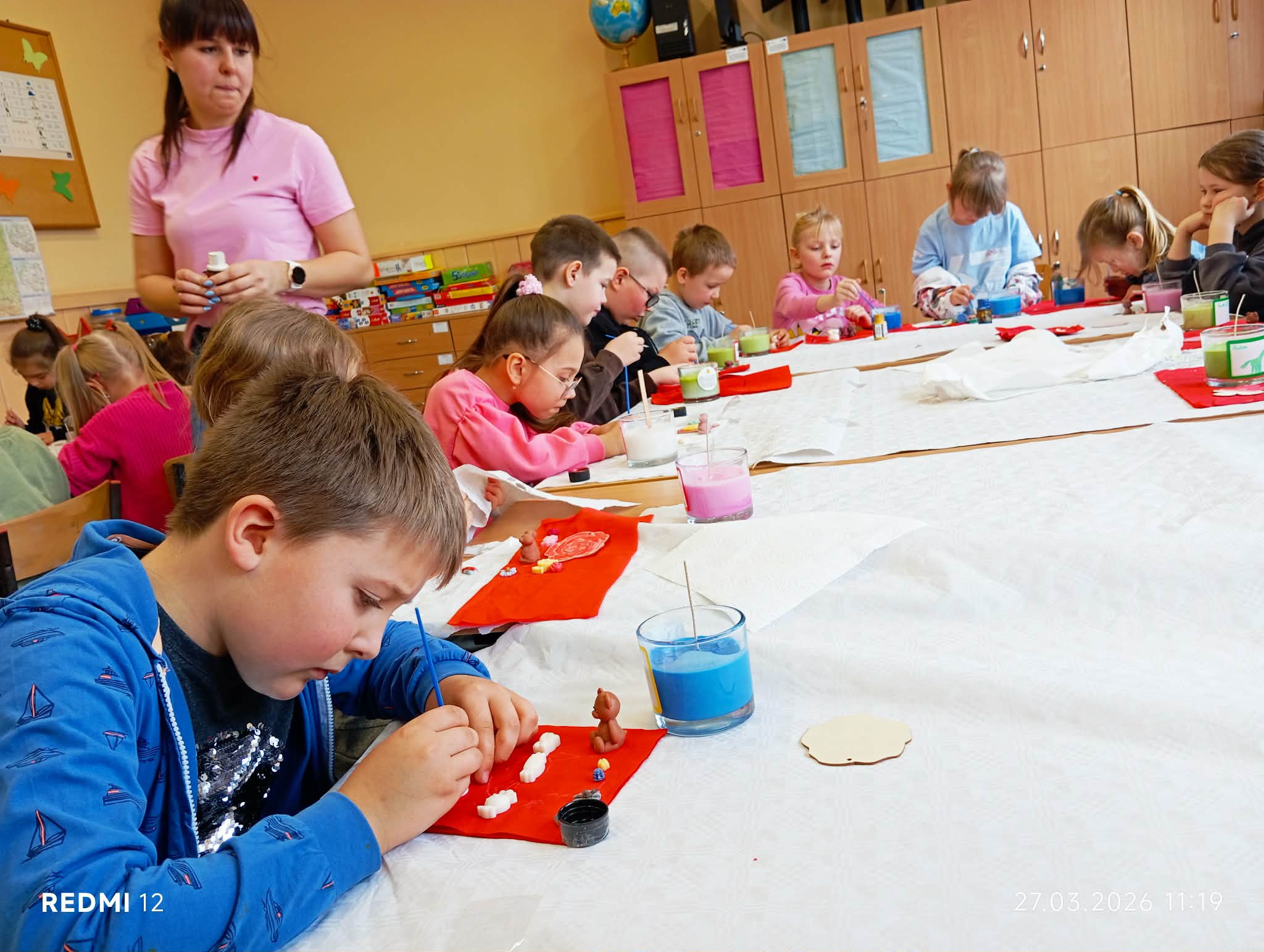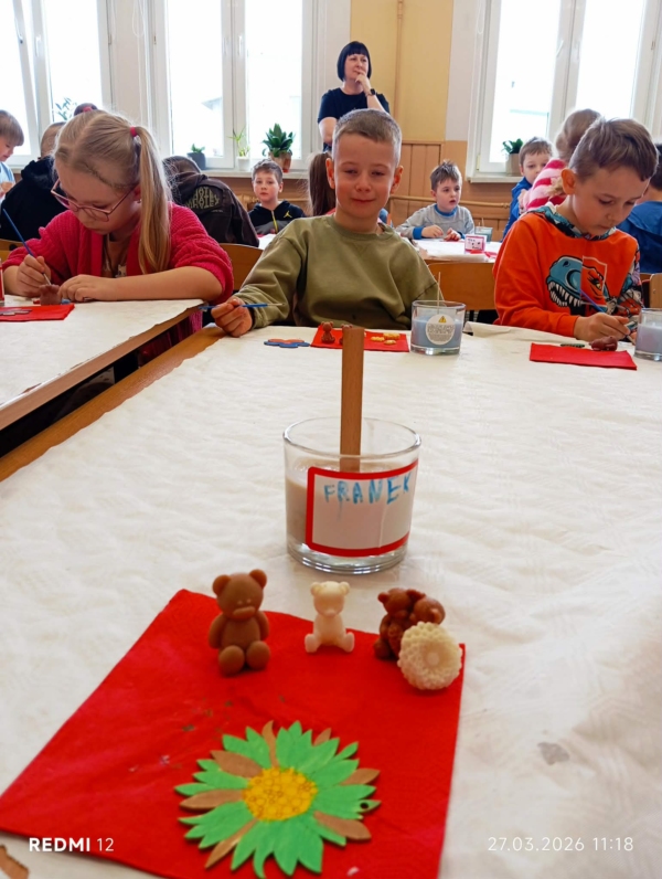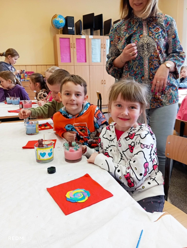 Uczniowie klasy „0” oraz klasy I wzięli udział w wyjątkowych warsztatach tworzenia świec. Podczas zajęć dzieci miały okazję poznać proces powstawania świec, a także samodzielnie wykonać własne, niepowtarzalne prace. Warsztaty były nie tylko świetną okazją do rozwijania kreatywności i zdolności manualnych, ale również do nauki cierpliwości i współpracy. Uczniowie z dużym zaangażowaniem dobierali kolory, zapachy oraz dodatki, tworząc piękne i oryginalne świece. Zajęcia sprawiły dzieciom wiele radości i dostarczyły niezapomnianych wrażeń. Efekty ich pracy były naprawdę imponujące!