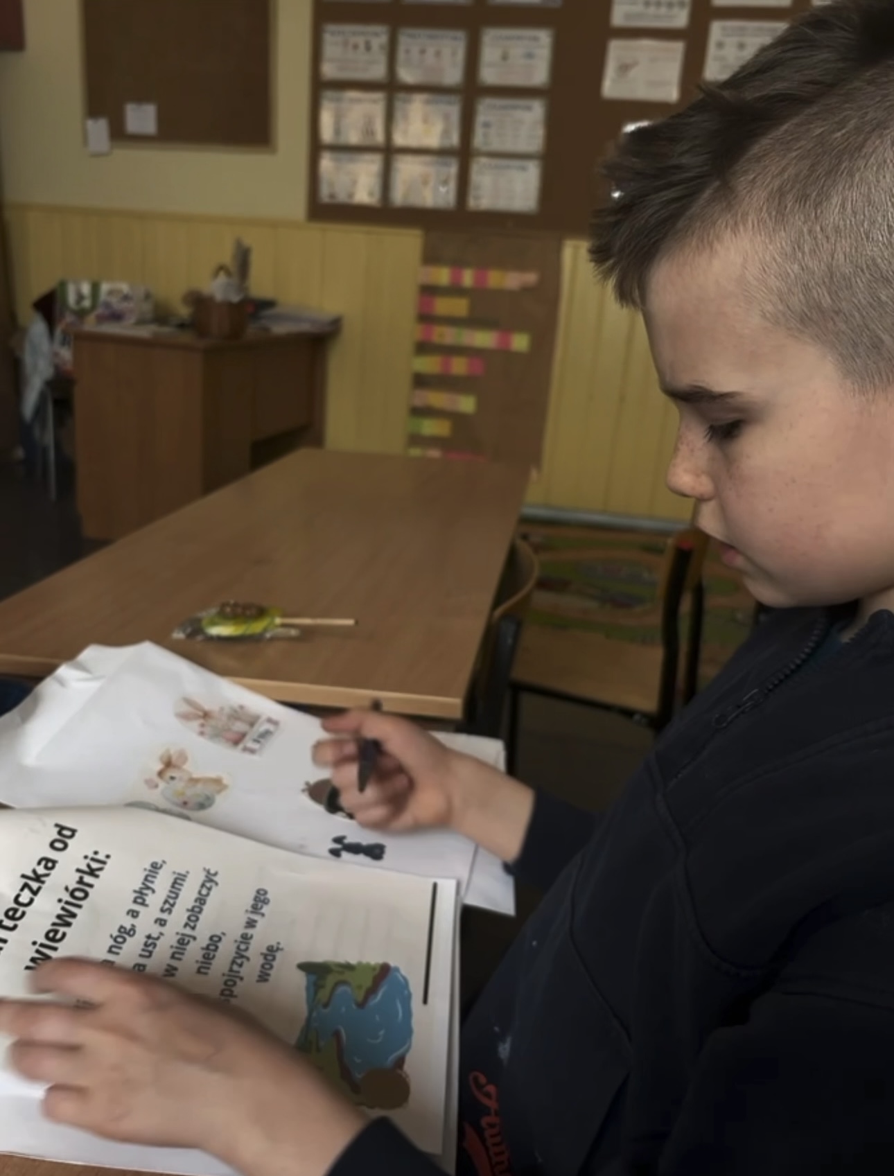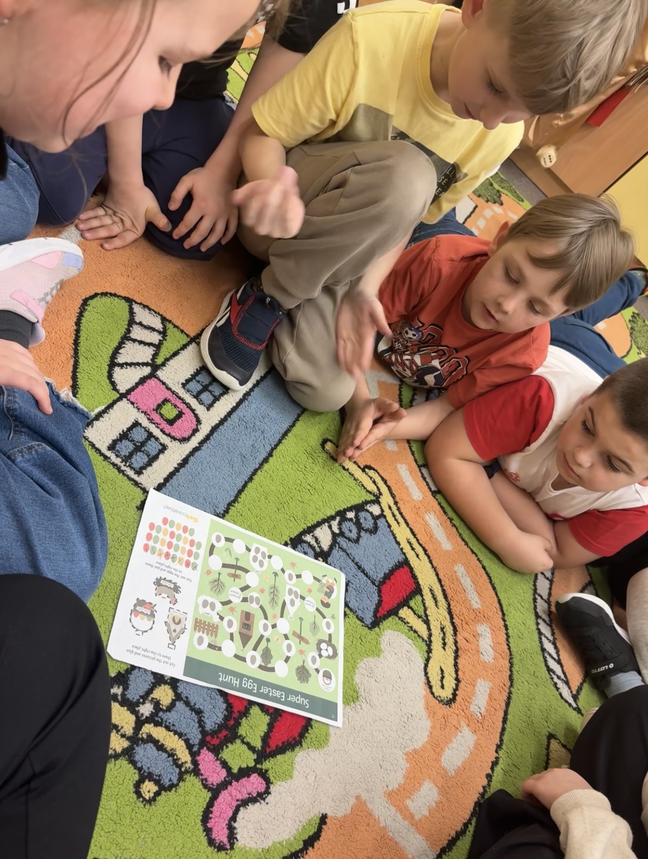 – zdrapywały ukryte wskazówki na arkuszach edukacyjnych, rozwiązywały historię wielkanocnego króliczka