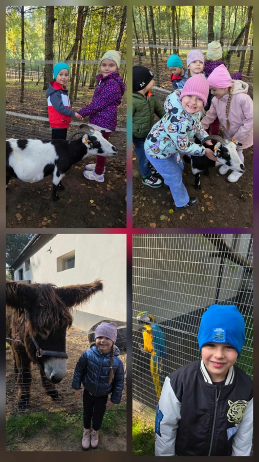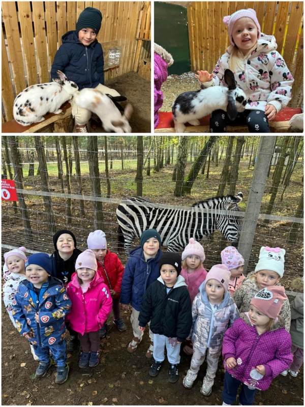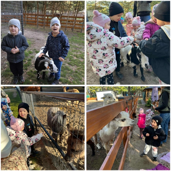 9 października przedszkolaki wyruszyły na wycieczkę do Mini Zoo Park Walim. Wyjazd był okazją do bliższego poznania świata zwierząt, a także integracji przedszkolaków. Po dotarciu na miejsce dzieci uczestniczyły w edukacyjnym spacerze pod opieką pań pracujących w Zoo. Z zaciekawieniem słuchały informacji o mieszkańcach Mini Zoo oraz podziwiały niespotykane na co dzień zwierzęta pochodzące z różnych kontynentów. Pod czujnym okiem opiekuna zwierząt, przedszkolaki głaskały i karmiły króliki marchewką. Kolejną atrakcją były zabawy na dmuchanym zamku, małpim gaju, zjeżdżalni pontonowej oraz placu zabaw. Wyjazd okazał się nie tylko wspaniałym przeżyciem, ale również atrakcyjną lekcją przyrody.